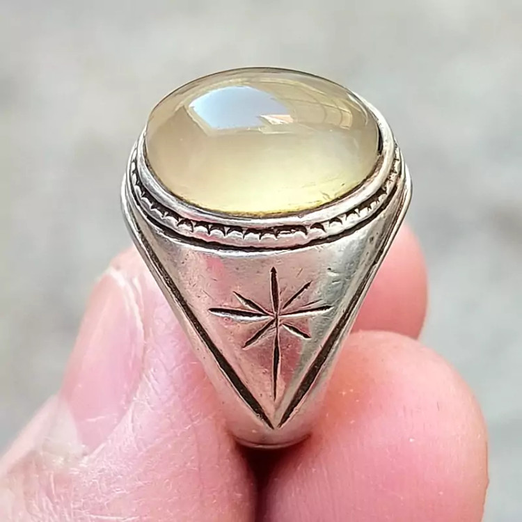 انگشتر عقیق نباتی کهنه با رکاب دست ساز ، پشت بسته