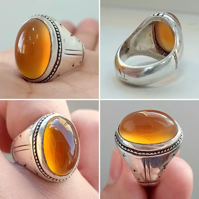 مشاهده محصولات مرتبطانگشتر عقیق پرتقالی یمنی آبدار بسیار زیبا و کلکسیونی با رکاب دست ساز استاد سید تهران اصل نقره عیار بالا 925