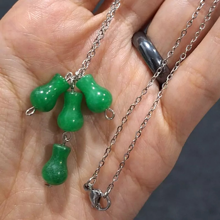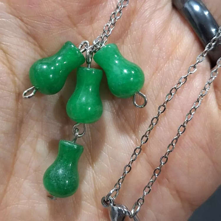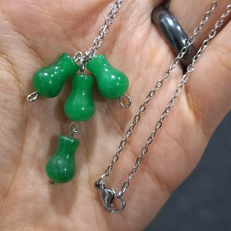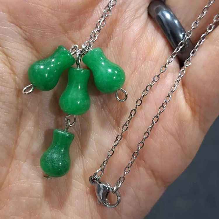 عقیق سبز مهره سنگ عقیق سبز گردنبند خاص و شیک به همراه زنجیر استیل رنگ ثابت