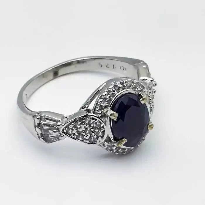 💍انگشتر نقره زنانه یاقوت کبود تراش جواهری اصیل