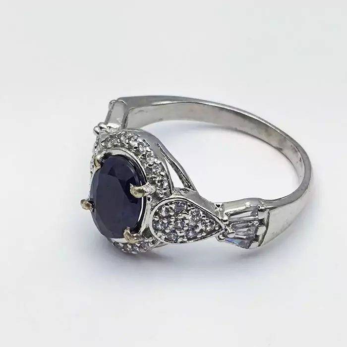 💍انگشتر نقره زنانه یاقوت کبود تراش جواهری اصیل