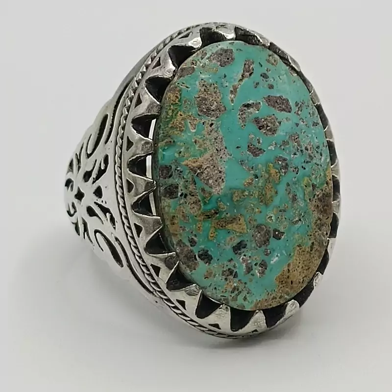 انگشتر نقره مردانه نگین فیروزه نیشابور کد 1806