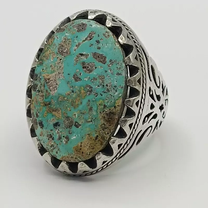 انگشتر نقره مردانه نگین فیروزه نیشابور کد 1806