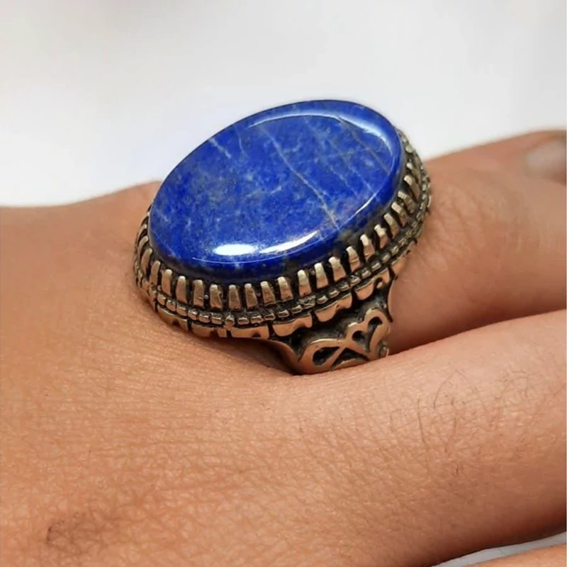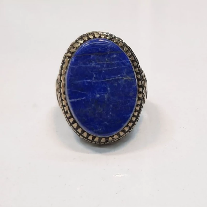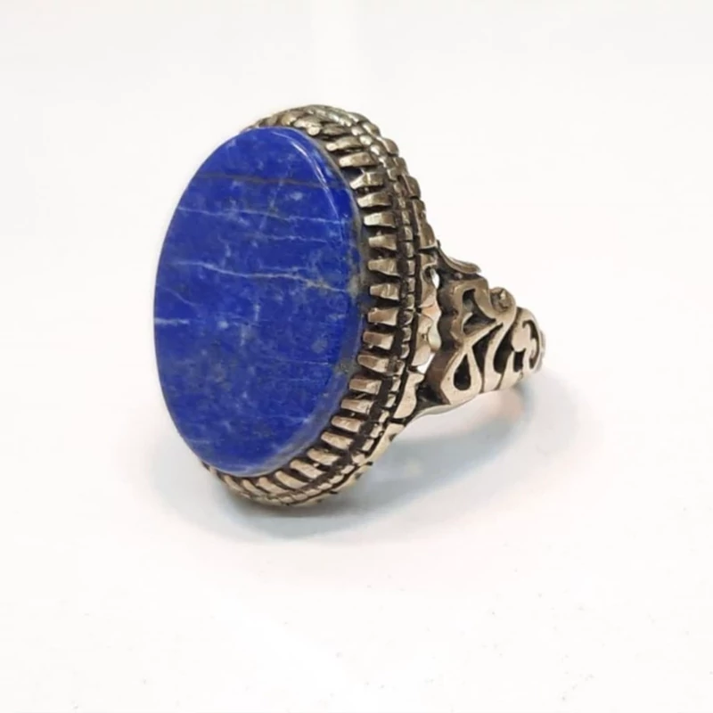 انگشتر مردانه سنگ لاجورد طبیعی نقره روسی کد1