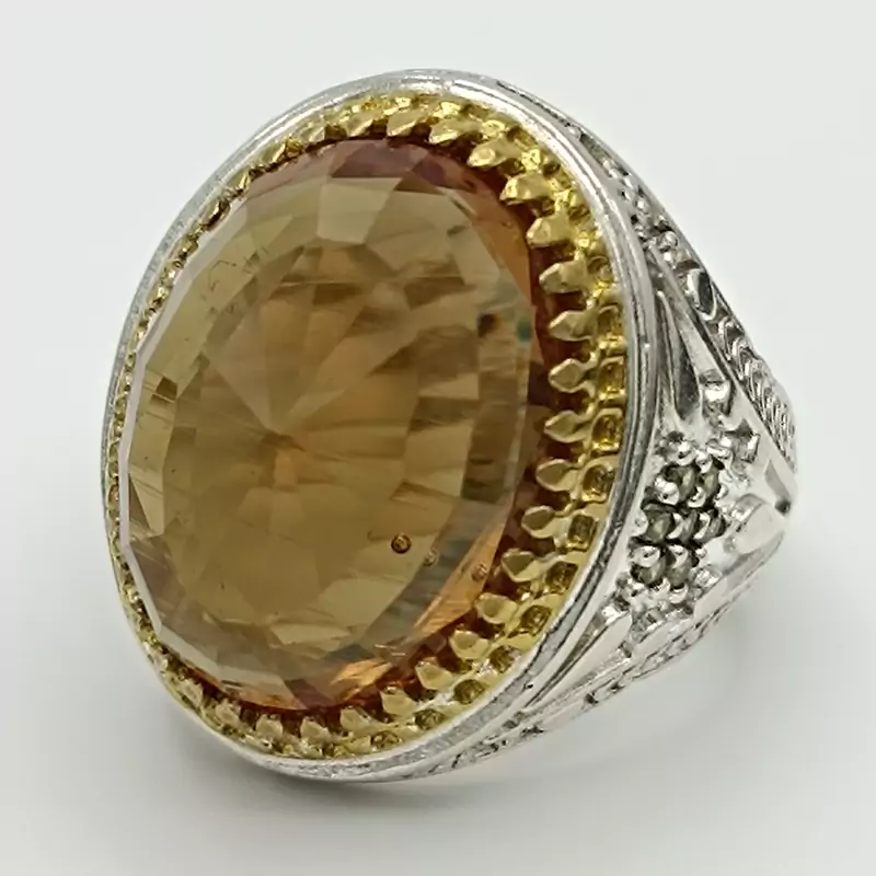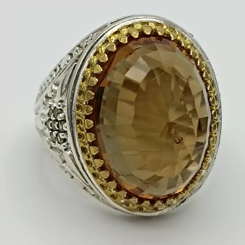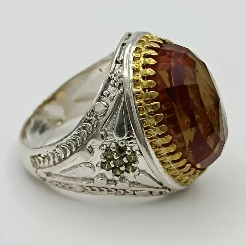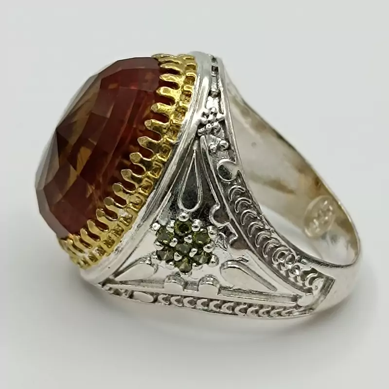 انگشتر نقره مردانه تاج طلایی الکسندریت هفت رنگ کد 1983