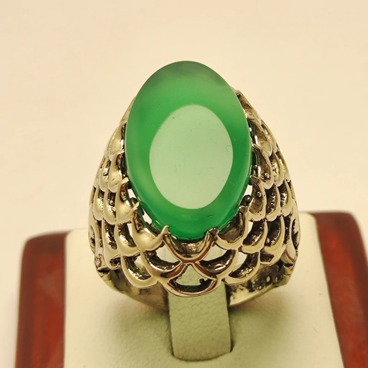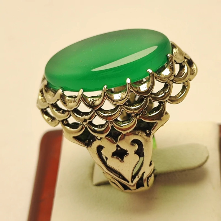 انگشتر مردانه عقیق سبز خراسانی رکاب نقره روس مناسب روز پدر