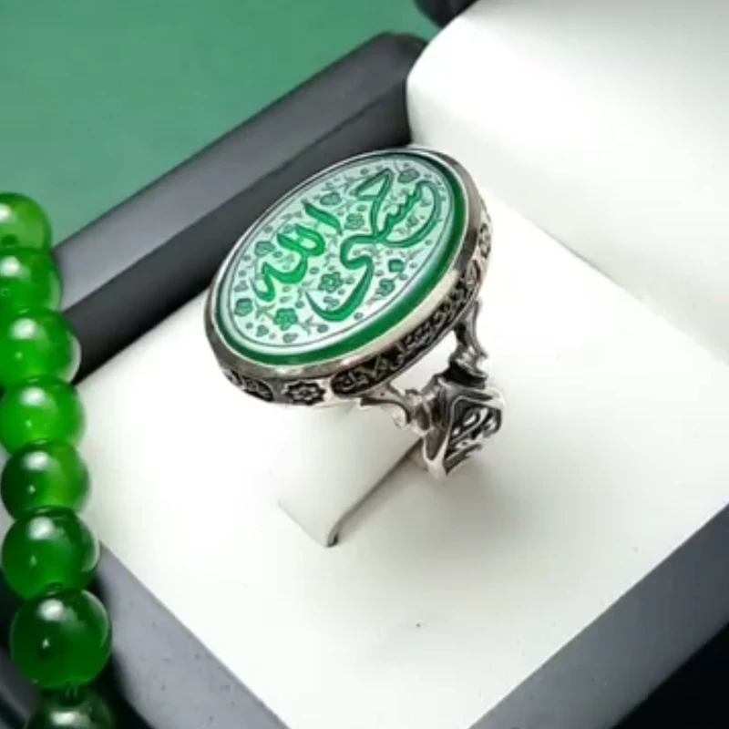 انگشتر نقره عقیق سبز با حکاکی حسبی الله رکاب خاص