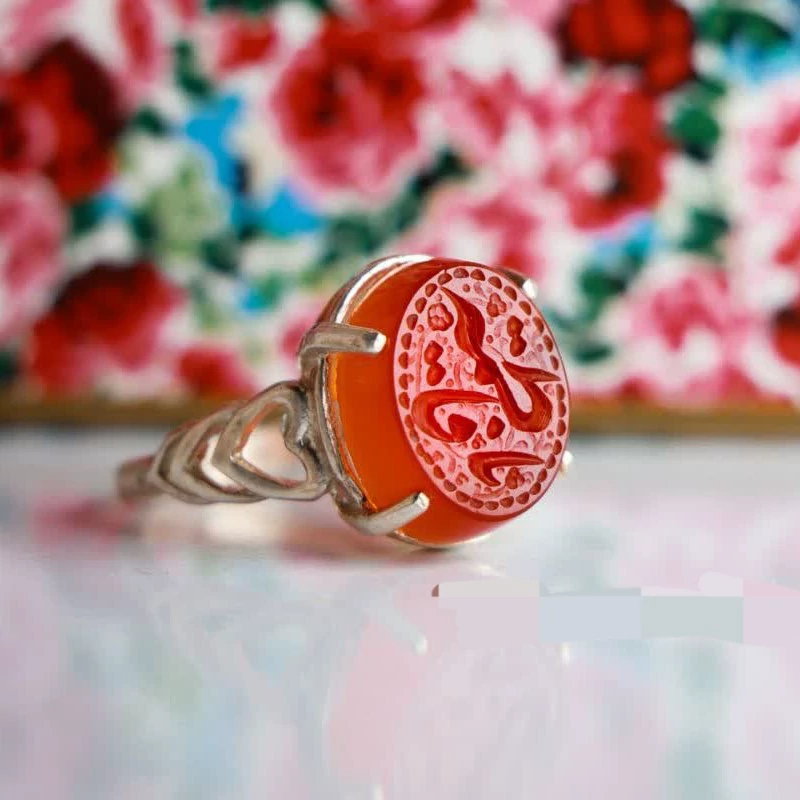 انگشتر نقره زنانه عقیق سرخ منقش به یا فاطمه-