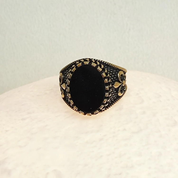 انگشتر مردانه اسپرت نگین مشکی با رکاب طلا روس رنگ ثابت