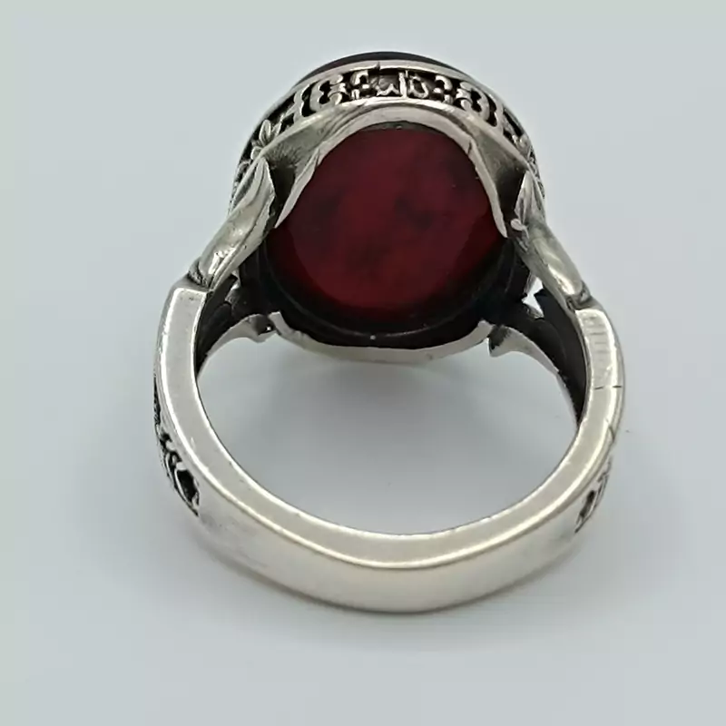 انگشتر نقره مردانه عقیق یمنی سرخ خطی کد 1999