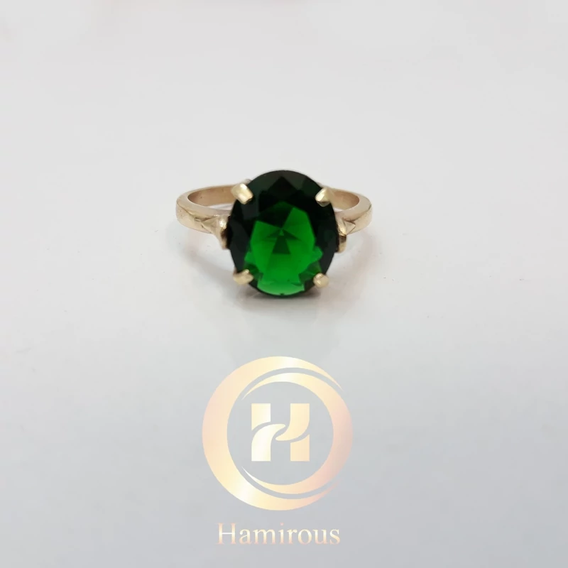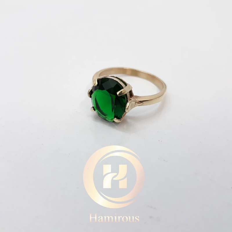 انگشتر طلاروسی زنانه نگین زمرد اتمی رنگ ثابت