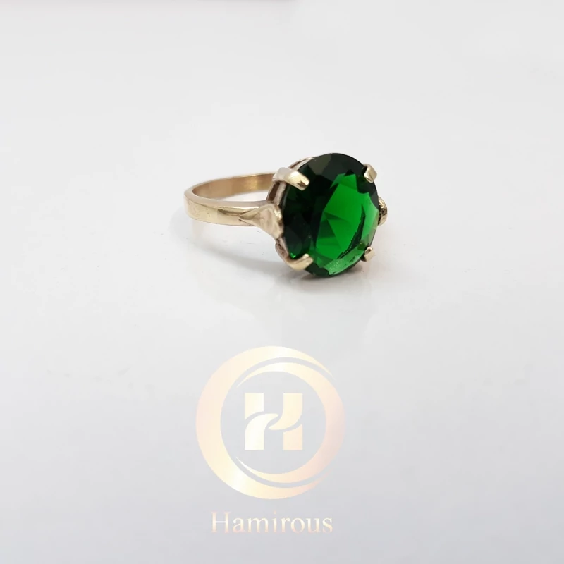 انگشتر طلاروسی زنانه نگین زمرد اتمی رنگ ثابت