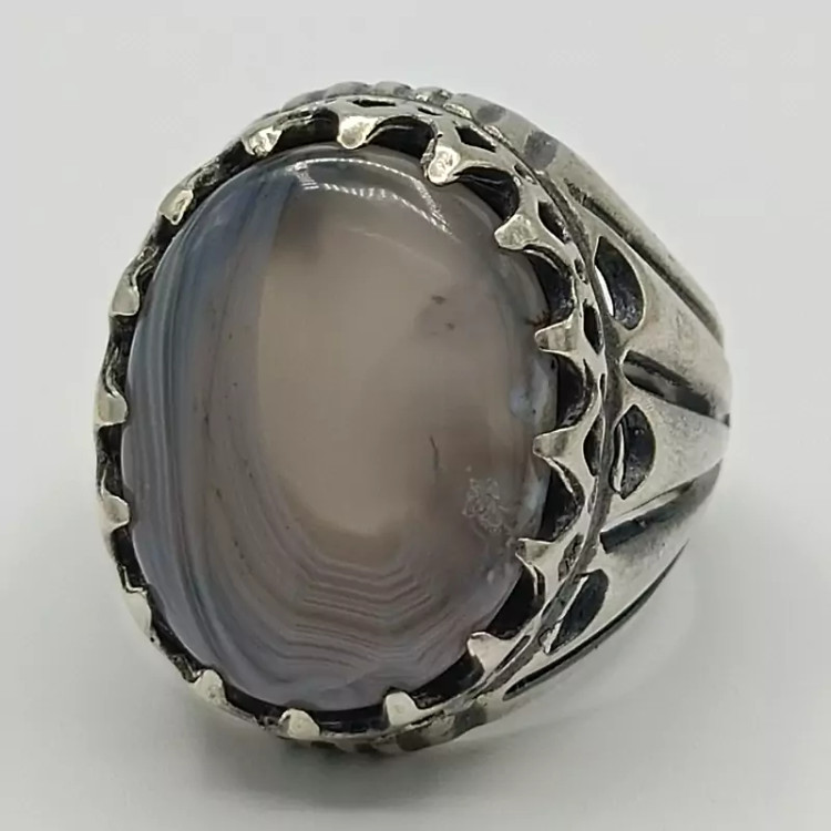 انگشتر نقره مردانه نگین عقیق سلیمانی کد 1841