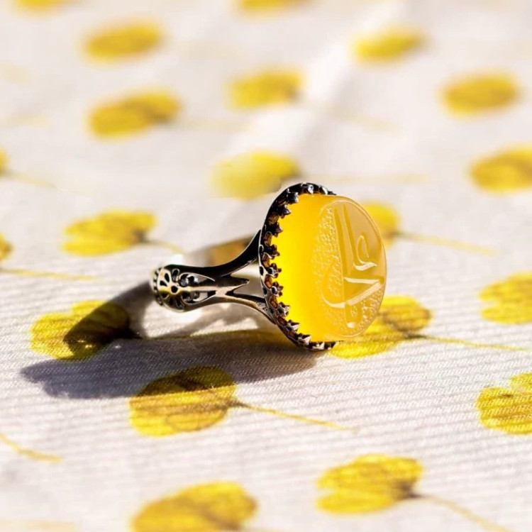 انگشتر نقره مردانه عقیق زرد منقش به یا علی-