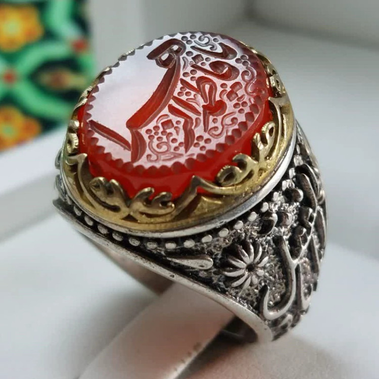 انگشتر نقره مردانه عقیق سرخ منقش به یا فاطمه الزهرا