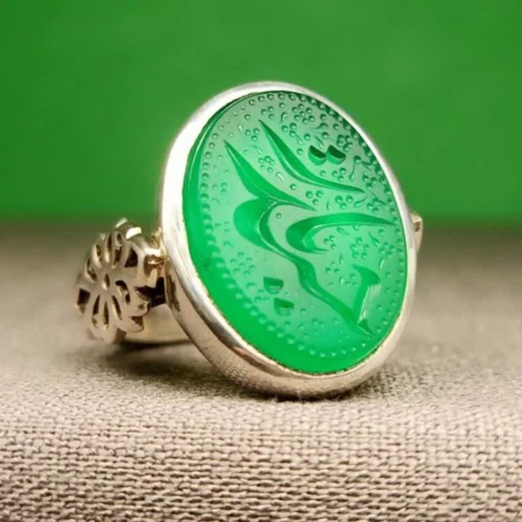 انگشتر نقره مردانه عقیق سبز منقش به یا حیدر