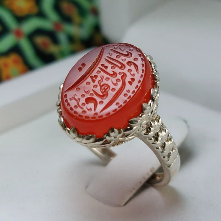 انگشتر نقره زنانه عقیق سرخ با حکاکی (با ولایت تا شهادت)