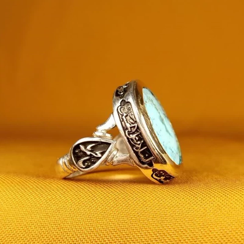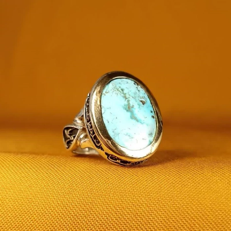 انگشتر نقره فیروزه نیشابوری رکاب ذکر دار