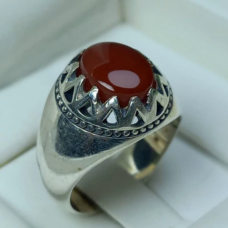انگشتر نقره مردانه با نگین عقیق سرخ یمن