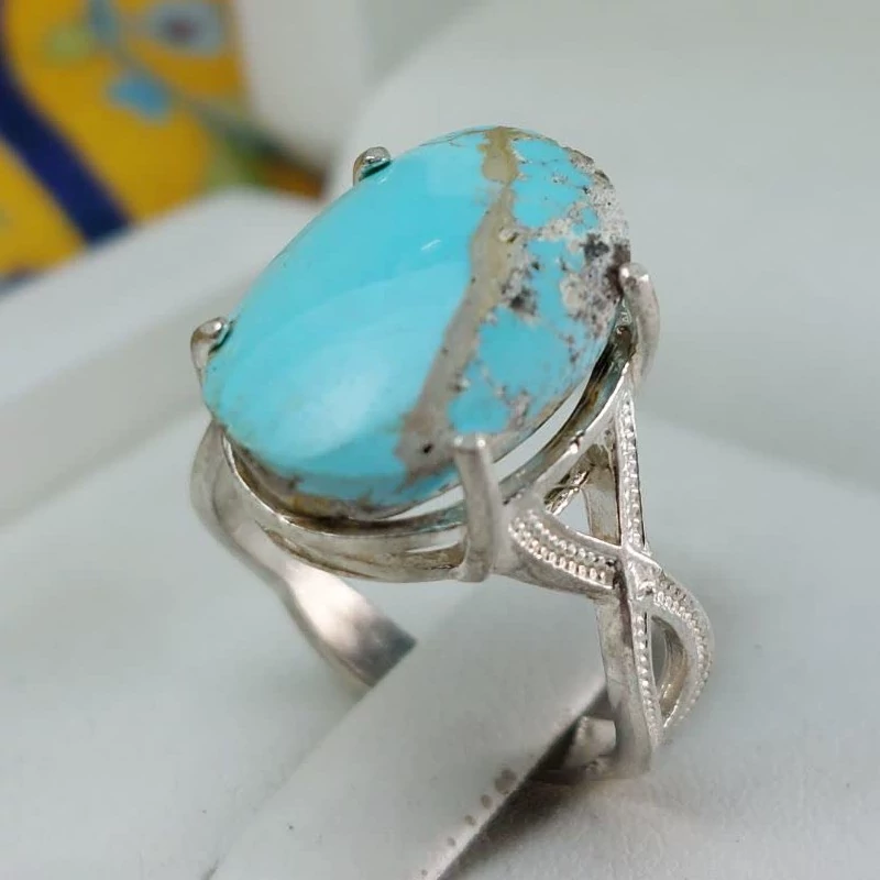 انگشتر نقره زنانه با نگین فیروزه نیشابوری