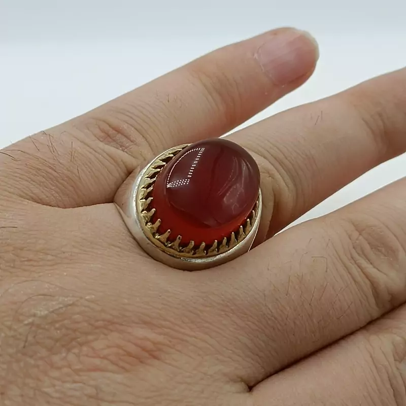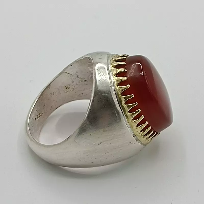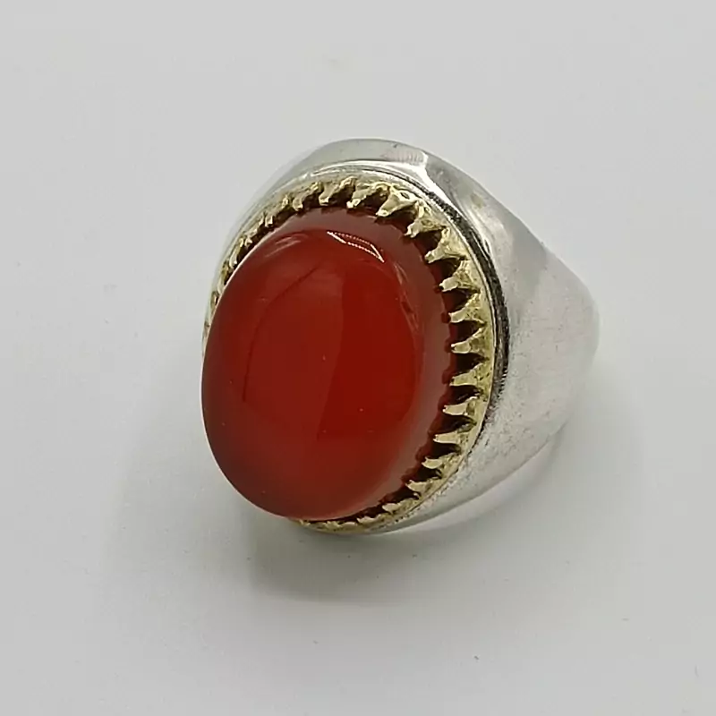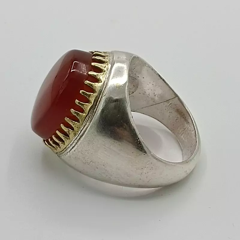 انگشتر نقره مردانه تاج برنجی عقیق پرتقالی کد 763