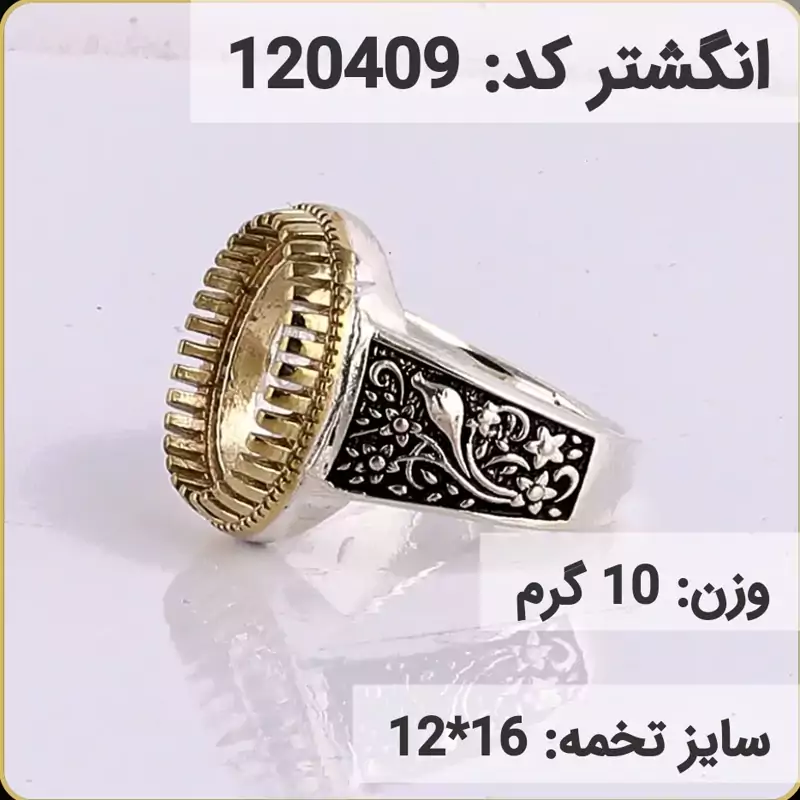 انگشتر نقره رکاب خالی کله برنجی کد 120409