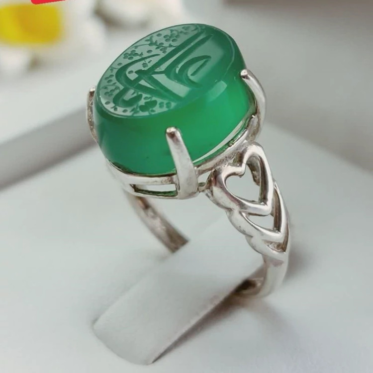 انگشتر نقره زنانه عقیق سبز منقش به یا علی ---