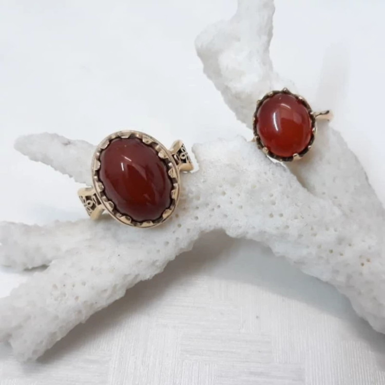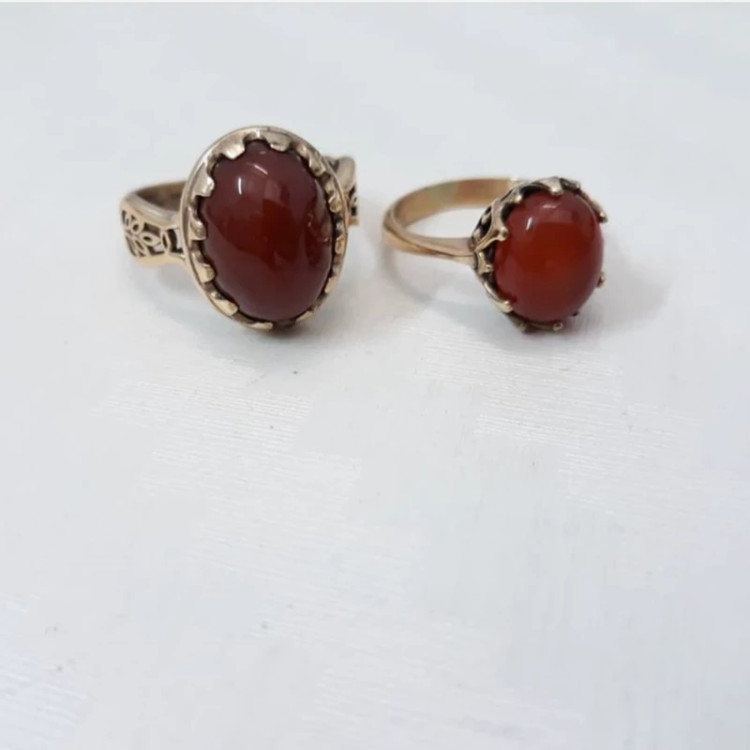 انگشترهای ست زنانه و مردانه عقیق سرخ خراسانی رکاب طلاروس
