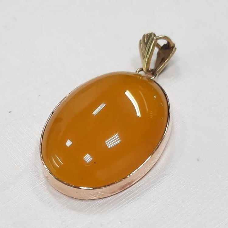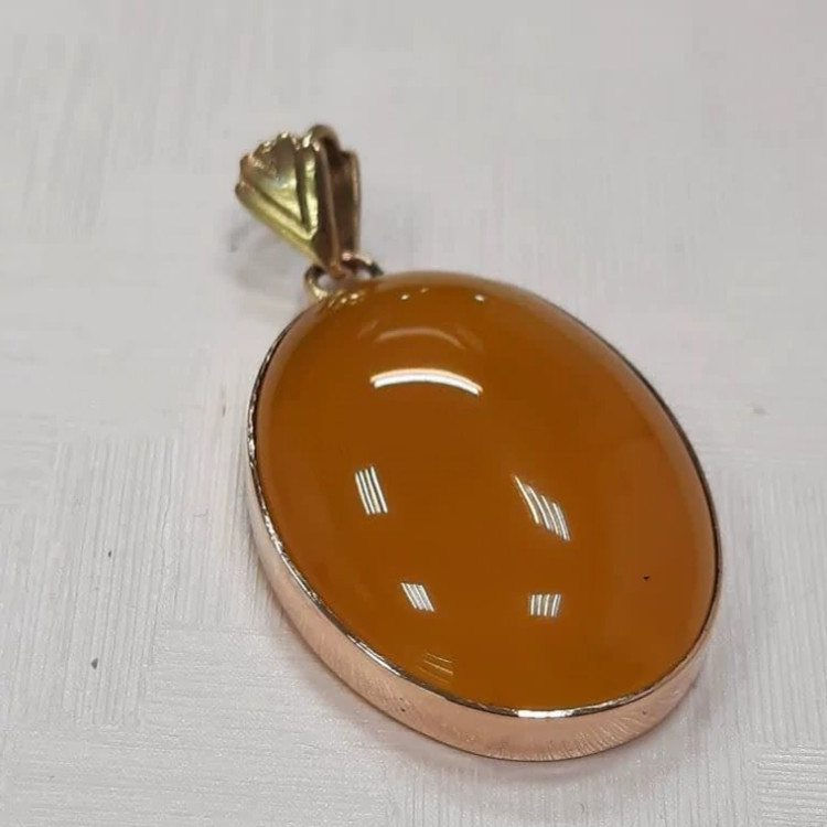 گردنبند عقیق زرد شرف الشمس قاب برنجی به همراه زنجیر استیل رایگان