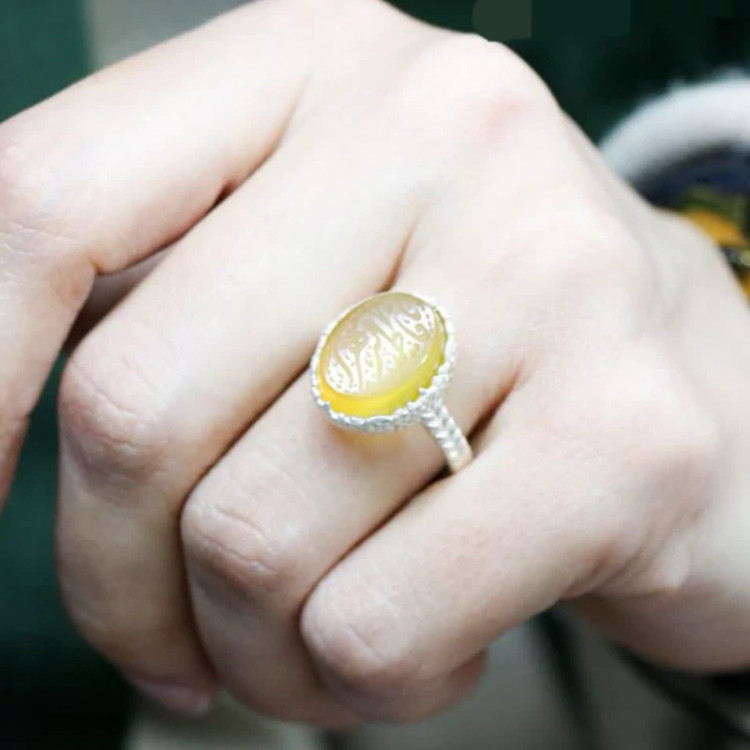 انگشتر نقره زنانه عقیق زرد منقش به یا فاطمه زهرا-