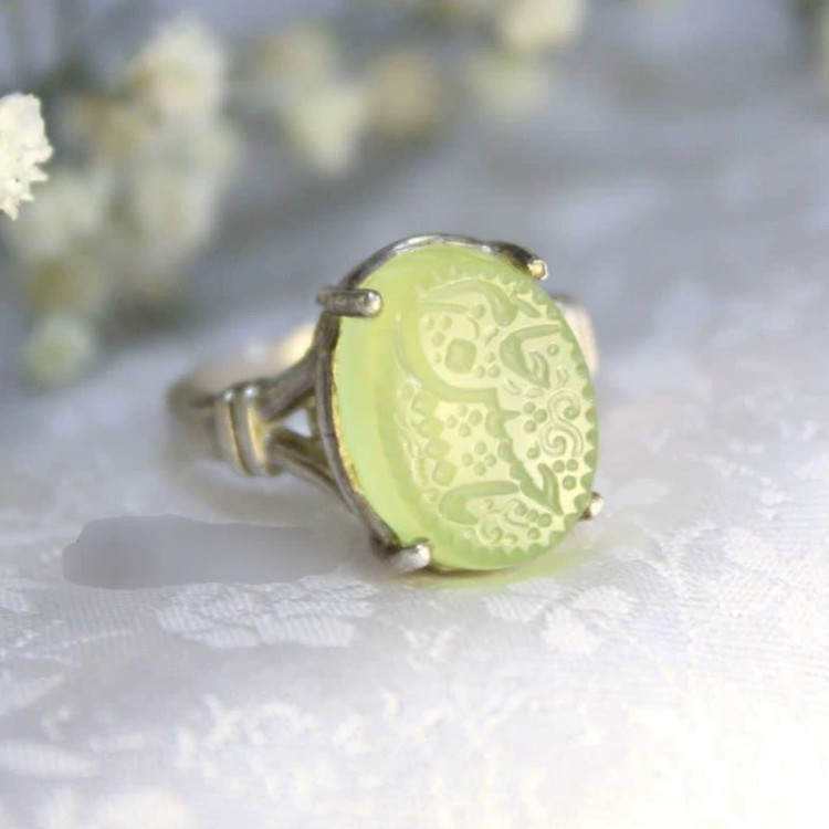 انگشتر نقره زنانه عقیق سبز منقش به یا حسین جانم -