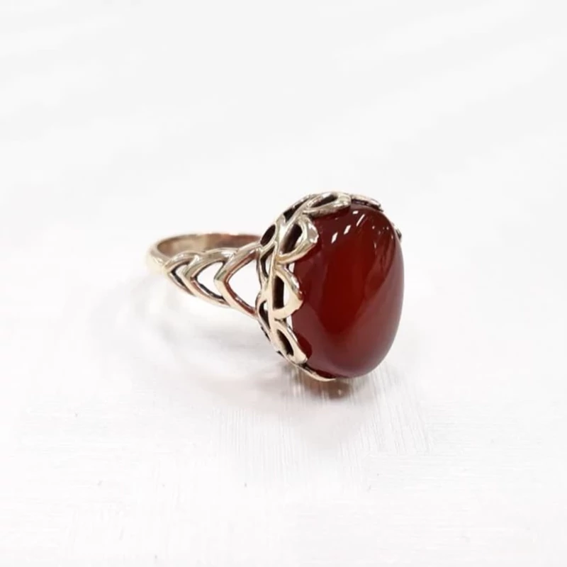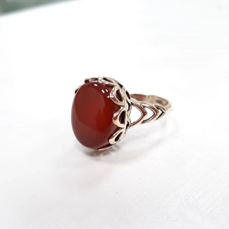 انگشتر طلا روسی زنانه عقیق سرخ خراسانی رنگ ثابت
