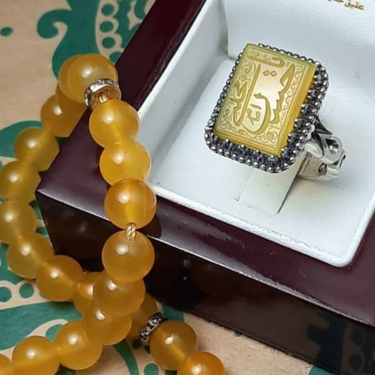 انگشتر نقره عقیق زرد با حکاکی یا امام حسن مجتبی علیه السلام