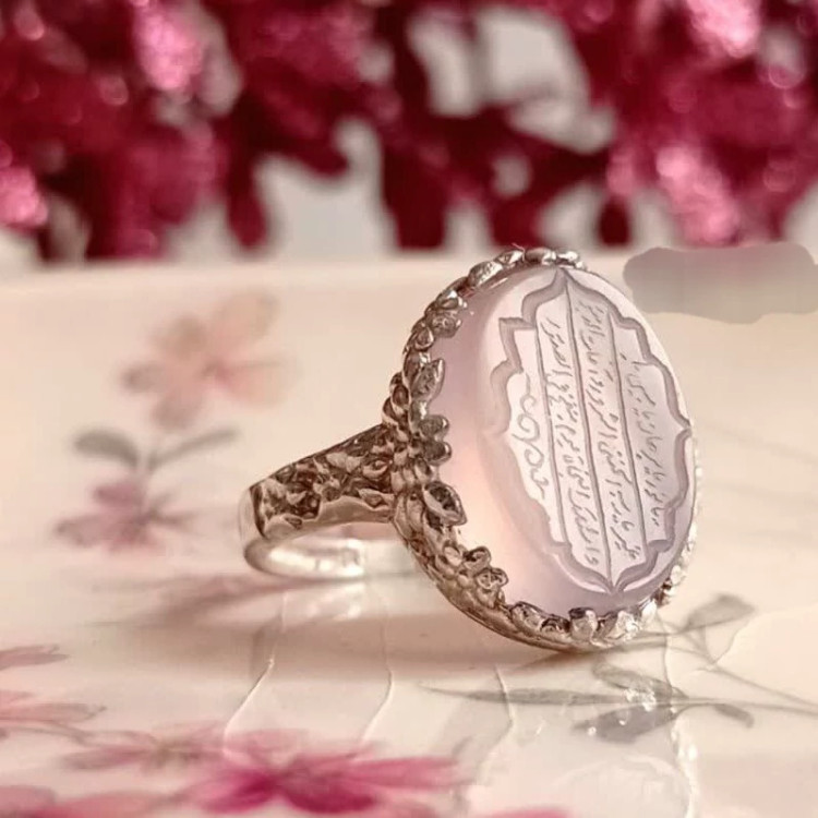 انگشتر نقره زنانه عقیق سوسنی منقش به حرز امام جواد. --