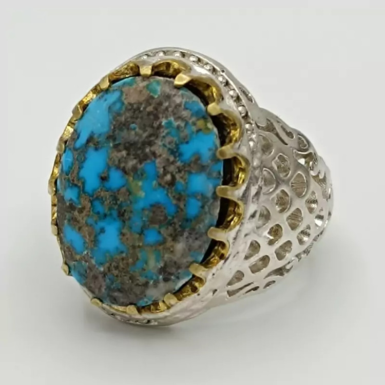 انگشتر نقره مردانه نگین فیروزه نیشابور شجری کد 1965