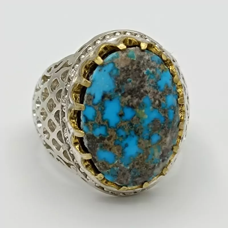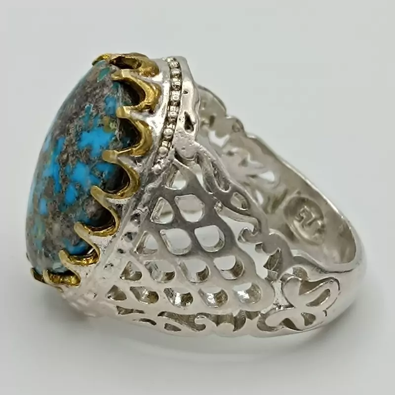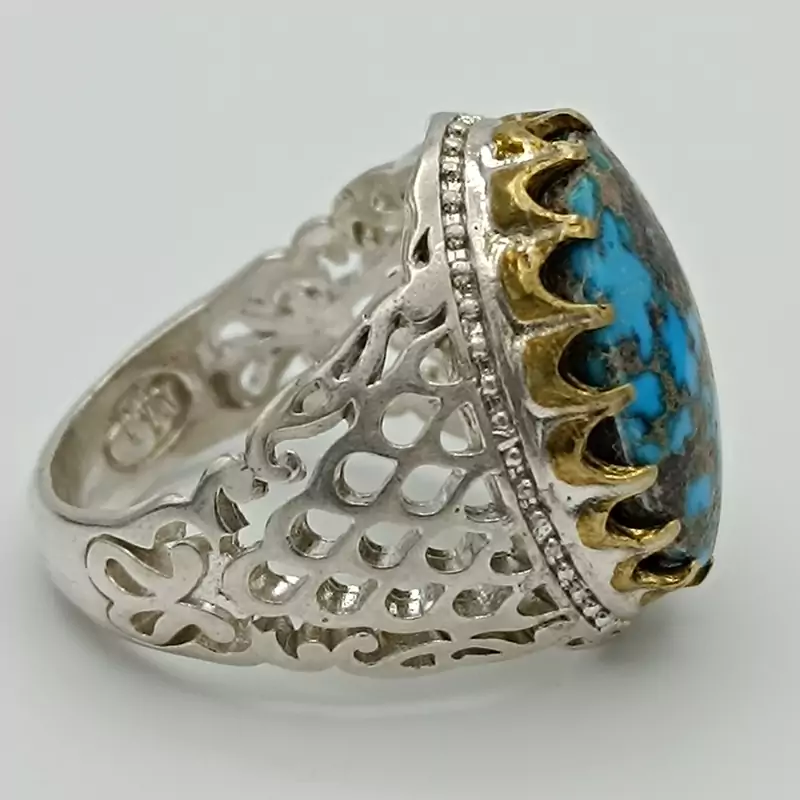 انگشتر نقره مردانه نگین فیروزه نیشابور شجری کد 1965