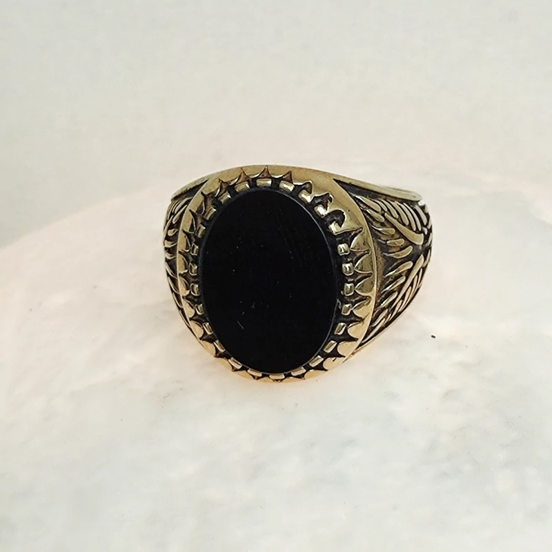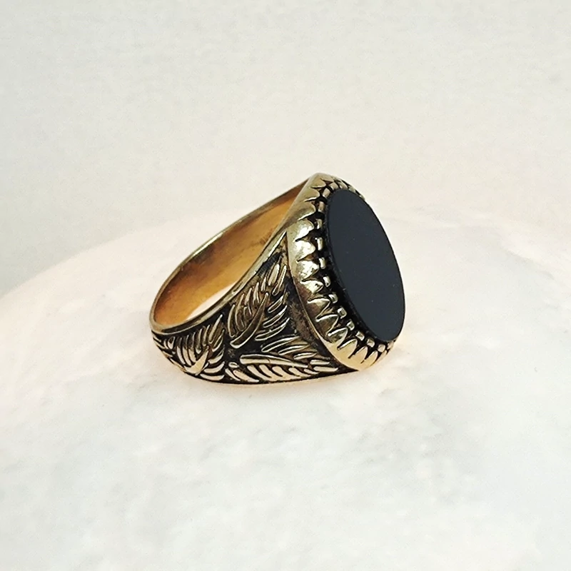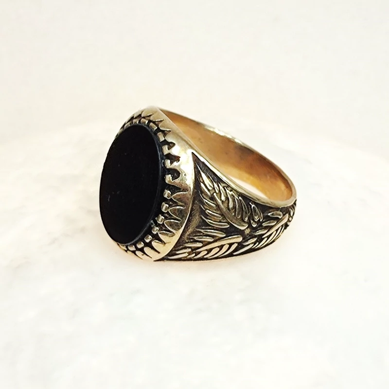 انگشتر مردانه عقیق مشکی رکاب طلا روس رنگ ثابت