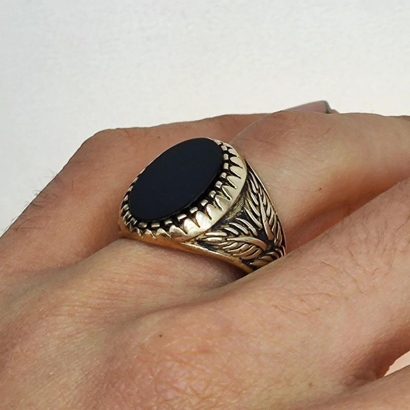 انگشتر مردانه عقیق مشکی رکاب طلا روس رنگ ثابت