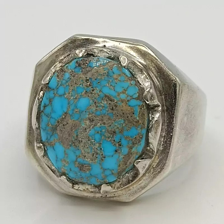 انگشتر نقره مردانه دستساز نگین فیروزه نیشابور مغز سنگ کد 1918