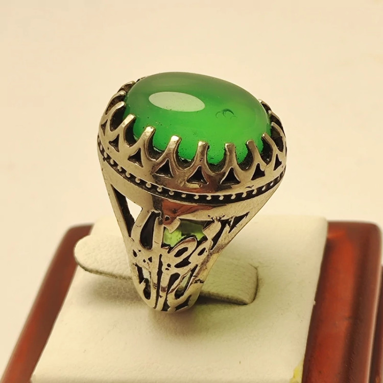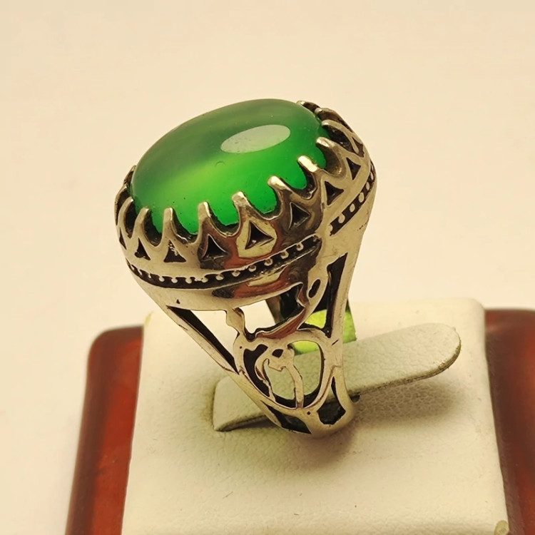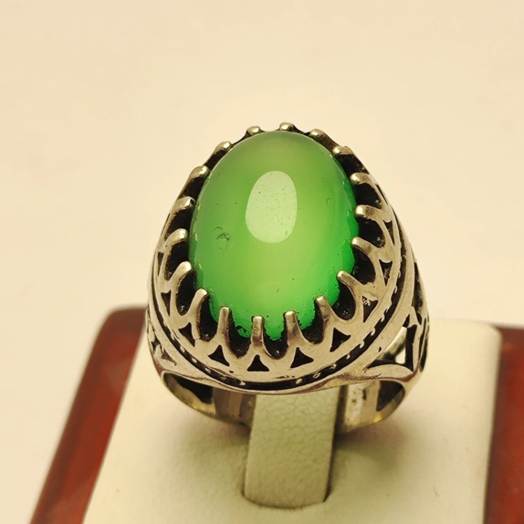 انگشتر مردانه عقیق سبز خراسانی رکاب نقره روس رنگ ثابت