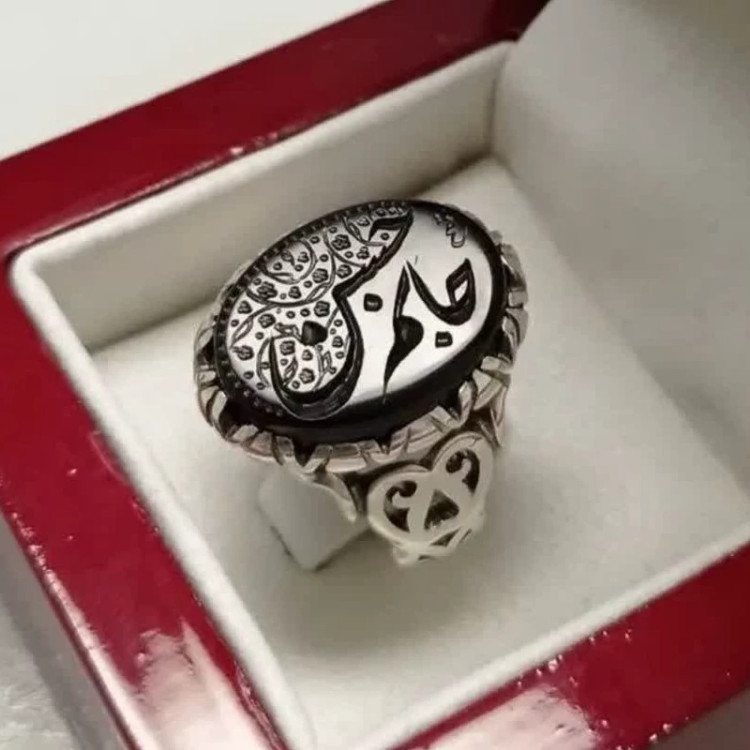 انگشتر نقره مردانه عقیق مشکی منقش به جانم حسن --