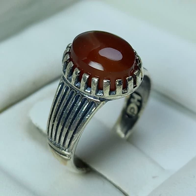 انگشتر نقره مردانه با نگین عقیق سرخ - یمنی
