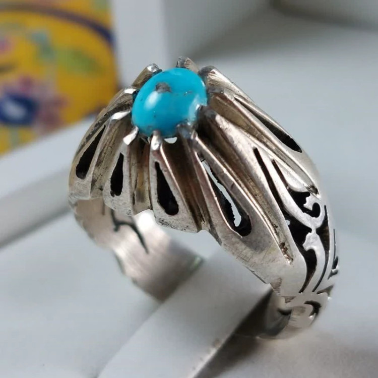 انگشتر نقره مردانه .با نگین فیروزه نیشابوری