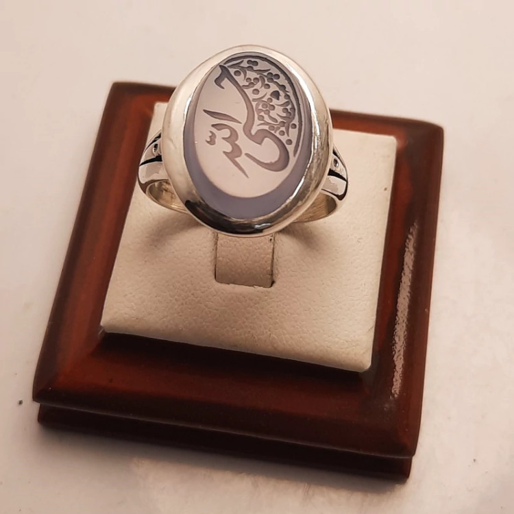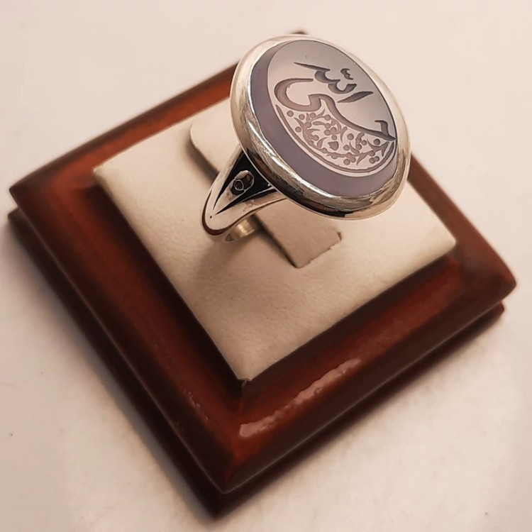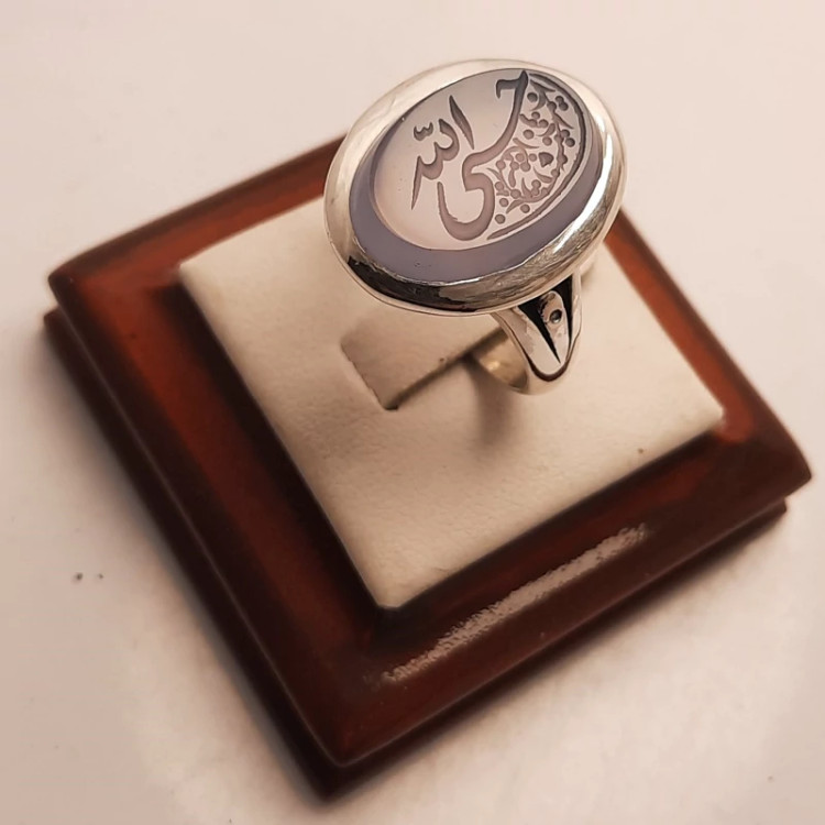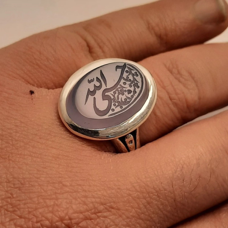 انگشتر نقره مردانه عقیق یاسی با حکاکی ذکر حسبی الله