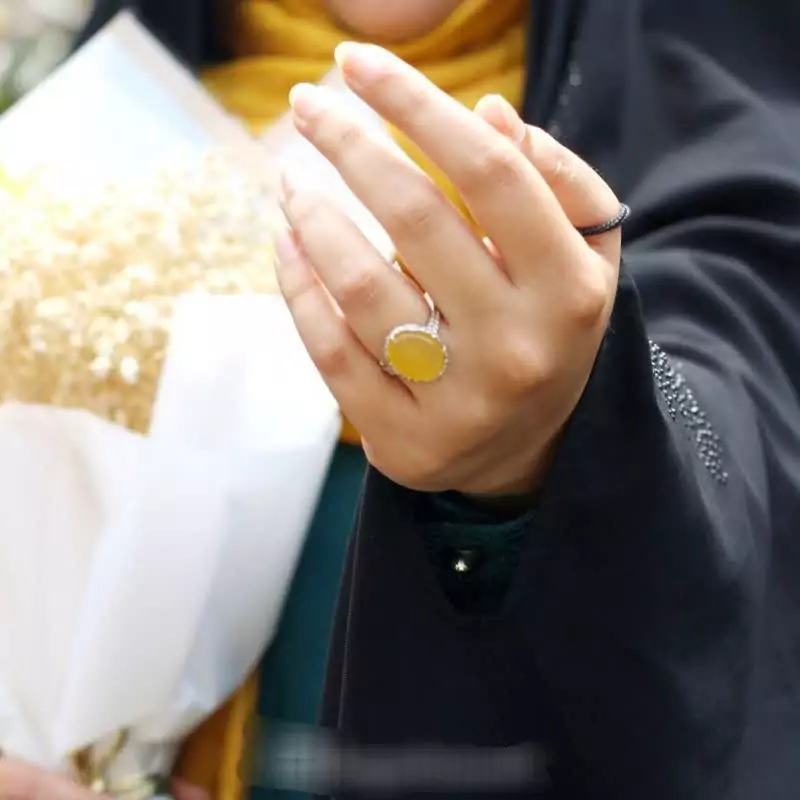 انگشتر نقره زنانه با نگین زیبای عقیق زرد -