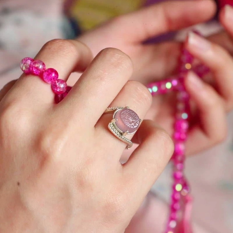 انگشتر نقره زنانه عقیق سوسنی منقش به یا عمه سادات --