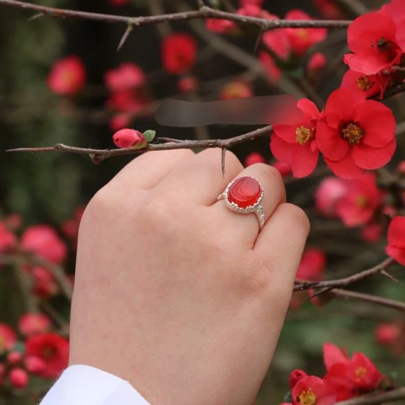 انگشتر نقره زنانه عقیق سرخ زیبا منقش به علی