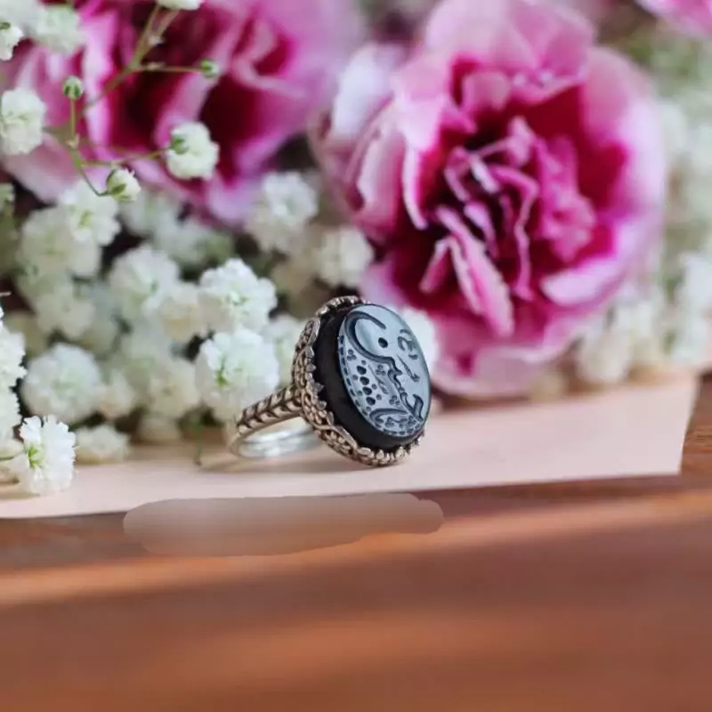 انگشتر نقره زنانه عقیق مکی منقش به یاحسین