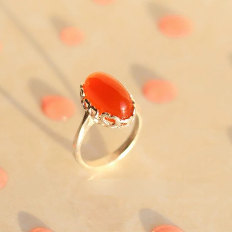 انگشتر نقره زنانه با نگین عقیق سرخ زیبا