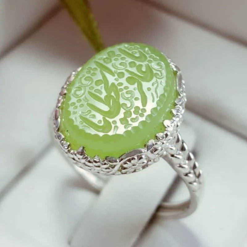 انگشتر نقره زنانه عقیق سبز منقش به یا غافر الخطایا -
